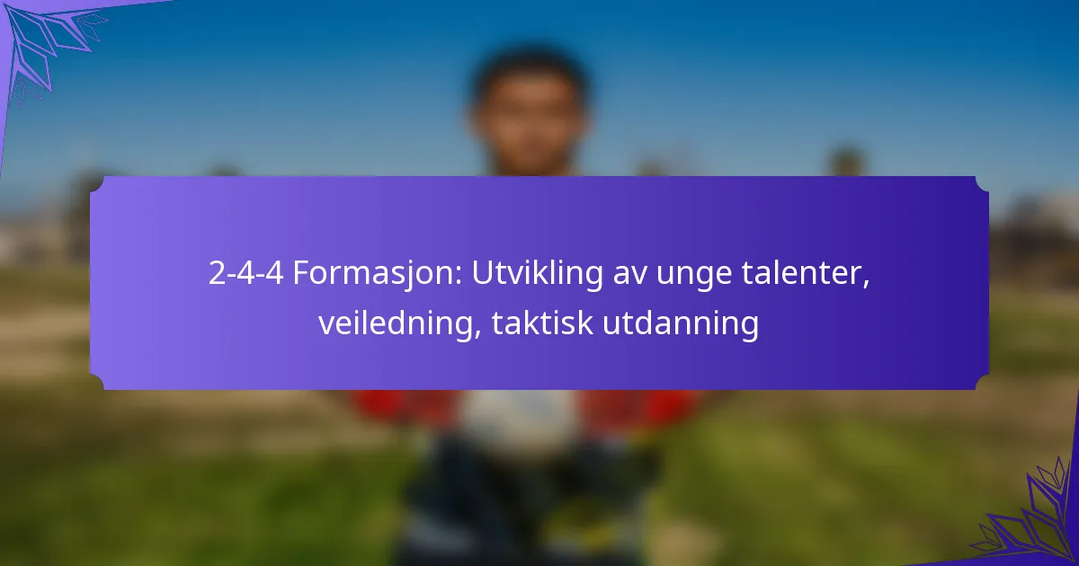 2-4-4-formasjonen er en dynamisk taktisk oppstilling i fotball som prioriterer offensivt spill samtidig som den sikrer en solid tilstedeværelse på midtbanen. Denne formasjonen forbedrer ikke bare lagets prestasjoner, men fungerer også som en effektiv plattform for å utvikle unge talenter gjennom veiledning og taktisk utdanning. Ved å engasjere spillerne i ulike roller fremmer den ferdighetsutvikling og en dypere forståelse av spillet, noe som fremmer både fysisk og mental vekst.